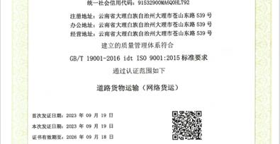 近日,大理州企業(yè)家協(xié)會會員單位——云南興大慧運物聯(lián)科技有限公司經(jīng)過國家相關(guān)質(zhì)量認證管理部門現(xiàn)場考核,順利通過了ISO9001質(zhì)量管理體系認證,預(yù)示著企業(yè)規(guī)范化管理進入了發(fā)展的快車道。云南興大慧運物聯(lián)科技有限公司成立于2020年,專注整車物流數(shù)智服務(wù),依托于互聯(lián)網(wǎng)、大數(shù)據(jù)、物聯(lián)網(wǎng)技術(shù)為上下游企業(yè)客戶提供全程標準化、智能化、可視化的一站式整車物流數(shù)字化貨運綜合服務(wù)。未來,興大慧運公司將繼續(xù)深耕智慧物流市場,打造西南地區(qū)領(lǐng)先的物流數(shù)智服務(wù)平臺,成為云南乃至西南地區(qū)最大且最值得信賴的運力共享平臺,構(gòu)建地區(qū)智慧物流