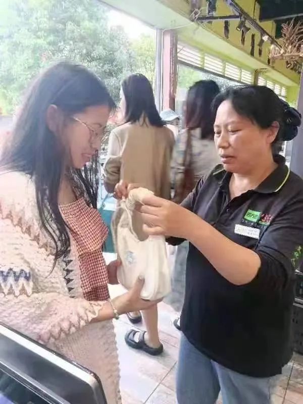 大約半小時(shí)之后,兩位年輕女孩匆忙走到收銀臺(tái)詢問是否有人撿到了一個(gè)小包。收銀員隨即叫來值班經(jīng)理和羅英核實(shí)了信息后,將小包還給了失主。失主接過包后,對失而復(fù)得的心情非常激動(dòng),多次表示感謝。