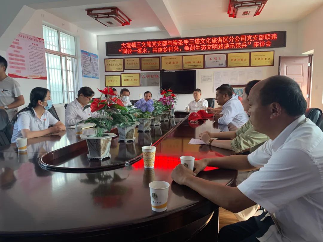 為學習貫徹習近平新時代中國特色社會主義思想,積極響應習總書記“綠水青山就是金山銀山”的號召,根據(jù)大理市委“同心圓城市基層黨建綜合體活動計劃”,“聚力蒼洱黨建綜合體活動計劃”統(tǒng)一安排,以轄區(qū)黨組織結對共建機制為依托,大理州企業(yè)家協(xié)會副會長單位——大理旅游集團下屬的崇圣寺三塔文化旅游區(qū)分公司黨支部與大理鎮(zhèn)三文筆黨支部于6月29日聯(lián)合開展“同飲一溪水,共建鄉(xiāng)村興、爭創(chuàng)文明旅游示范兵”支部共建活動。