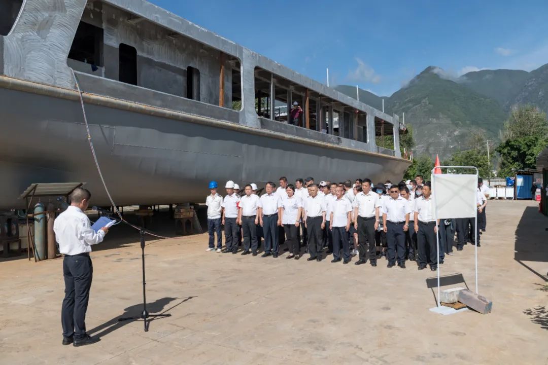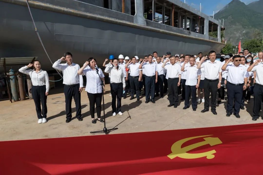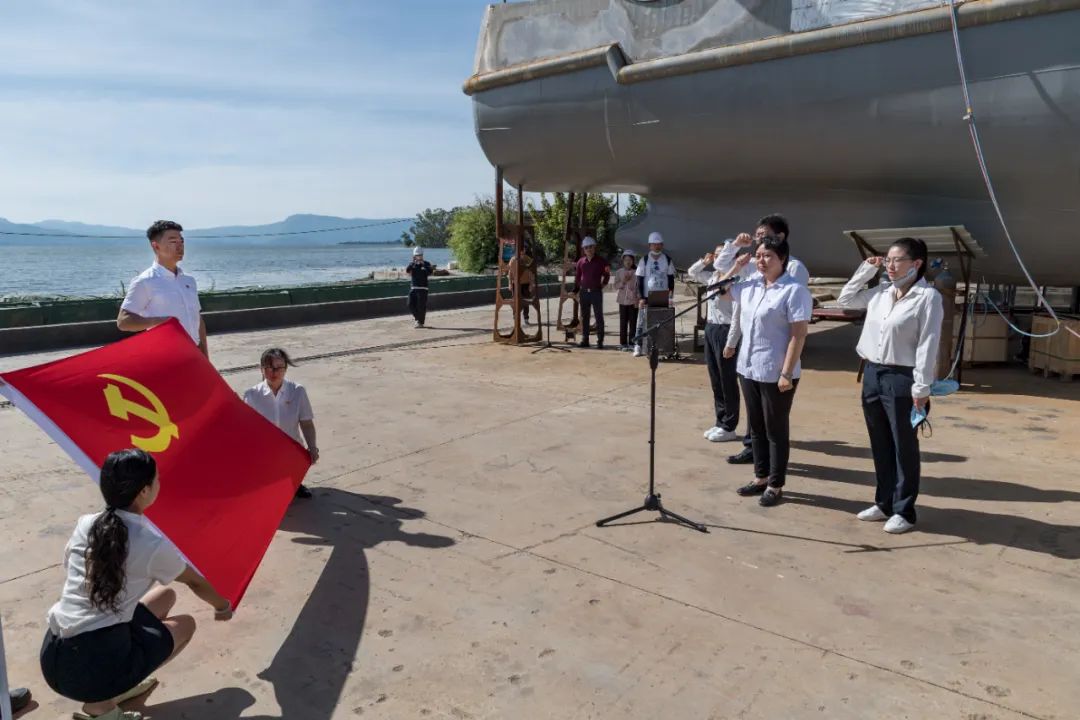 公司黨委創(chuàng)新活動形式,將宣誓地點定在桃源碼頭268客位新能源船舶更新建造項目上。今年新入黨的預(yù)備黨員在洱海畔面向黨旗莊嚴宣誓,公司黨委委員、副總經(jīng)理陶婷同志領(lǐng)誓,在場的全體黨員共同重溫了入黨誓詞。宣誓結(jié)束后,參加活動的全體人員共同參與了268客位新能源船舶更新建造項目的調(diào)研。