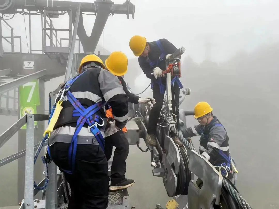 在集中開展景區(qū)節(jié)前索道、景區(qū)旅游專線客運車、景區(qū)道路大保養(yǎng)、大排查、大檢查工作中,為確保節(jié)前“體檢”工作按質(zhì)按量順利完成,9月5日至8日,雞足山景區(qū)索道經(jīng)營部和旅游專線客運車隊80多名員工克服多雨、大霧、寒冷的多變天氣,采取每天中午12時至夜間23時開展排查、檢查和保養(yǎng)工作,集中對站內(nèi)設(shè)備的V型皮帶張緊系統(tǒng)、推車器總承及支架輪襯的更換,輪胎氣壓檢查和設(shè)備清潔等(共10個大項、190多個小項) 等項目進行檢查維護保養(yǎng)及更換。