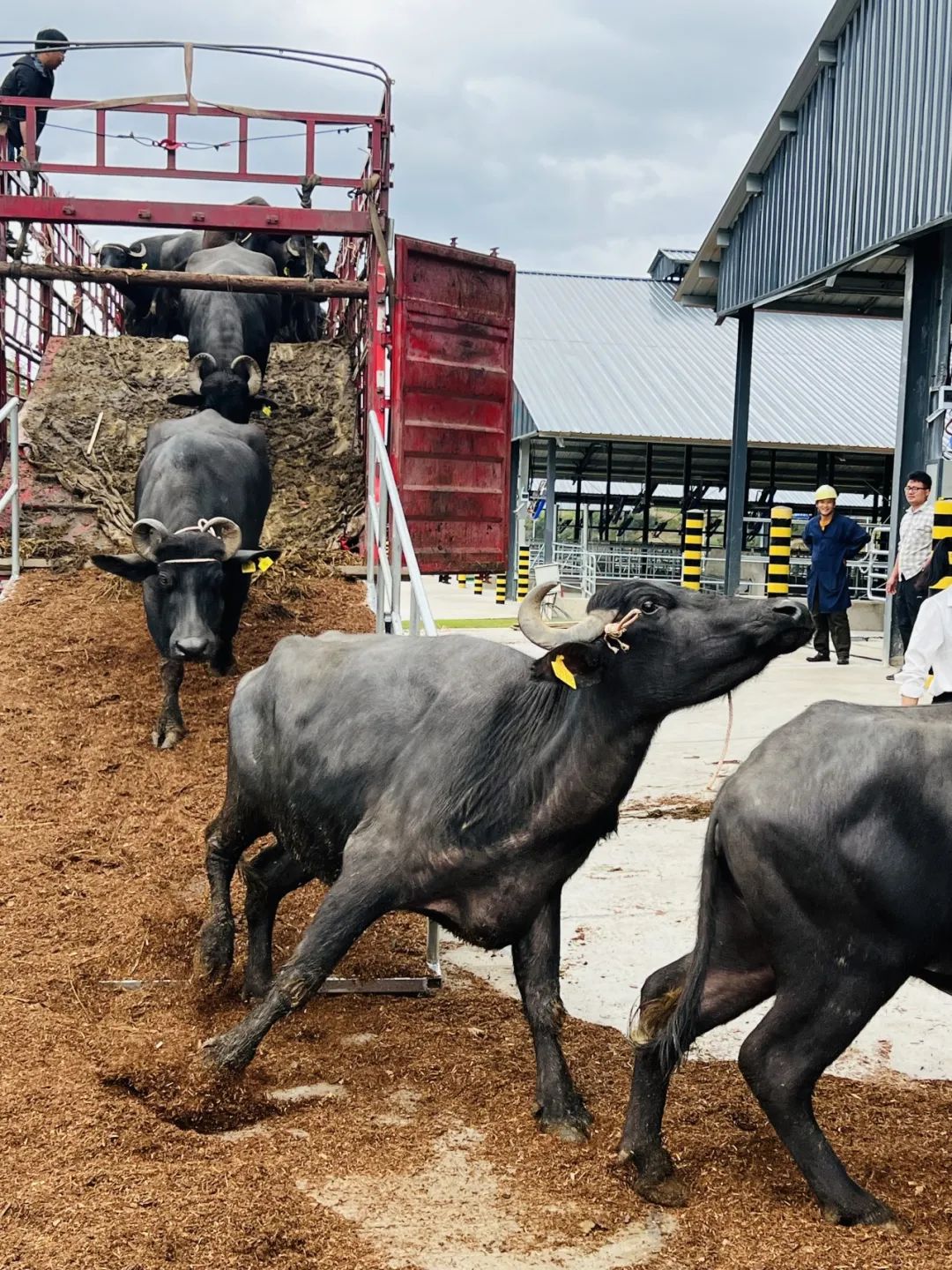 摩菲水牛源于1957年印度贈予我國的46頭“摩拉”奶水牛、巴基斯坦“尼里•拉菲”與云南本土奶水牛雜交并經(jīng)數(shù)代改良的優(yōu)良奶水牛品種,其所產(chǎn)的水牛奶蛋白質(zhì)含量是普通牛奶的1.71倍(數(shù)據(jù)來源:來思爾收購奶源平均蛋白含量指標水牛奶-4.8%、普通牛奶-2.8%),有“奶中黃金”之稱。隨著牧場的投入運營,來思爾精選的首批300多頭優(yōu)質(zhì)摩菲水牛也一起入住了它們的新家。