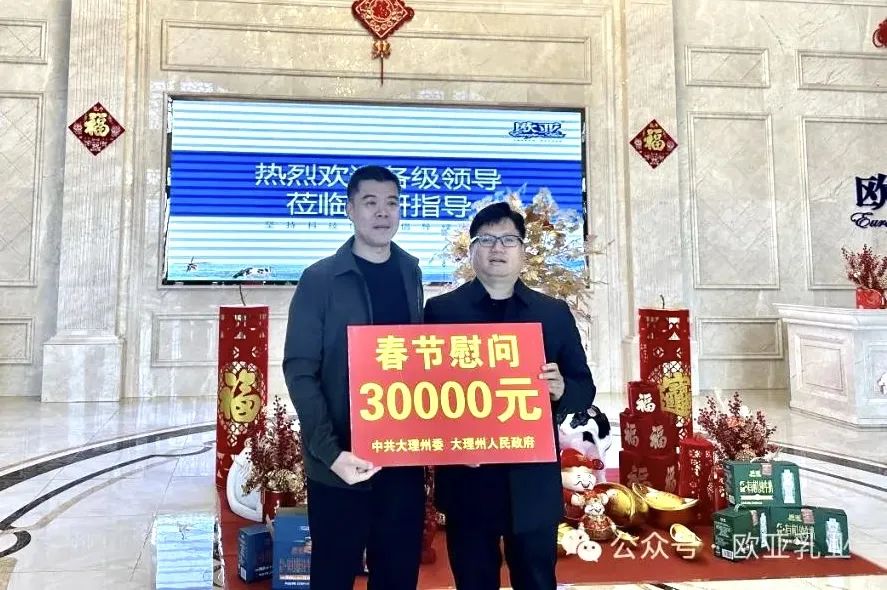 2月2日下午,大理州委副書記、州長(zhǎng)陳真永率隊(duì)到大理州企業(yè)家協(xié)會(huì)理事單位——云南歐亞乳業(yè)有限公司開展春節(jié)前慰問(wèn),并檢查企業(yè)安全生產(chǎn)工作。