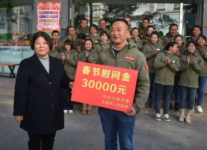 市委慰問組給予云南四方街商貿(mào)有限公司30000元的慰問金,以表彰云南四方街商貿(mào)有限公司在大理市商業(yè)零售工作中所做的貢獻,領(lǐng)導(dǎo)們的關(guān)心讓公司全體員工充滿溫暖,感受到市委政府對企業(yè)的新春祝福及關(guān)心,也體現(xiàn)了市委政府對民營企業(yè)的關(guān)心與重視。