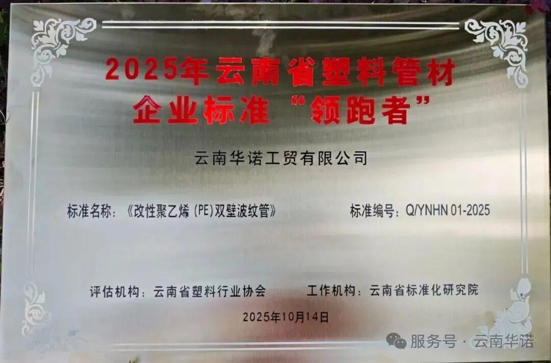 此次活動由云南省市場監(jiān)管局、云南省工信廳、省藥監(jiān)局等八部門聯(lián)合牽頭,評估范圍聚焦中藥材、塑料管材、電線電纜、咖啡四大核心領(lǐng)域,歷經(jīng)多輪嚴(yán)苛評審,全省僅19家企業(yè)憑借硬實(shí)力突圍。大理州企業(yè)家協(xié)會副會長單位——云南華諾工貿(mào)有限公司榮獲2025年云南省塑料管材企業(yè)標(biāo)準(zhǔn)“領(lǐng)跑者”稱號。