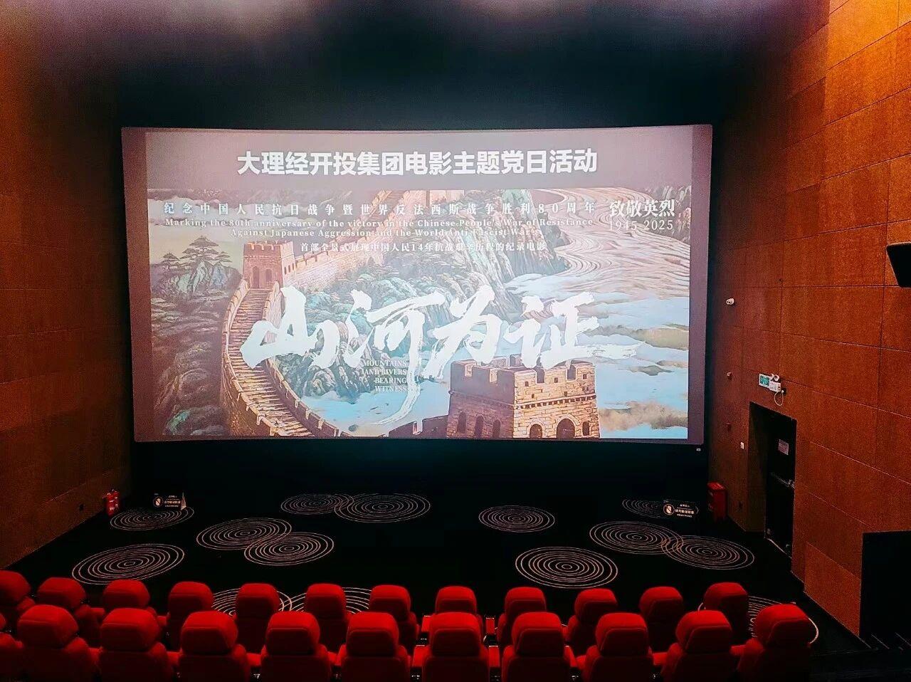 為紀(jì)念中國人民抗日戰(zhàn)爭暨世界反法西斯戰(zhàn)爭勝利 80 周年,深入激發(fā)黨員愛國情懷,傳承偉大抗戰(zhàn)精神,10月16日至10月17日,大理州企業(yè)家協(xié)會會員單位——大理經(jīng)開投集團(tuán)黨委組織全體黨員分批觀看紀(jì)錄電影《山河為證》,接受深刻的精神洗禮與黨性教育。
