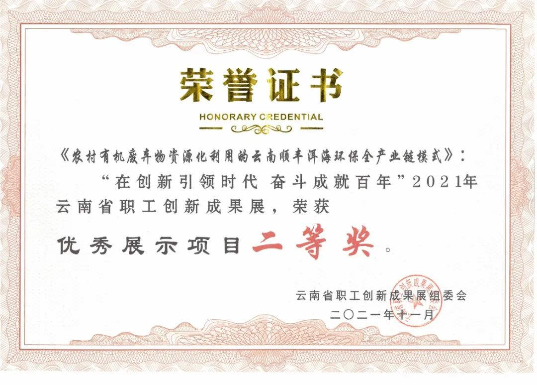 11月中旬,由云南省總工會在昆明舉辦的“創(chuàng)新引領(lǐng)時代·奮斗成就百年”職工創(chuàng)新成果展活動中,大理州企業(yè)家協(xié)會常務(wù)副會長單位——云南順豐洱海環(huán)??萍脊煞萦邢薰緟⒄沟?ldquo;農(nóng)村有機廢棄物資源化利用全產(chǎn)業(yè)鏈模式”榮獲“優(yōu)秀展示項目”二等獎。