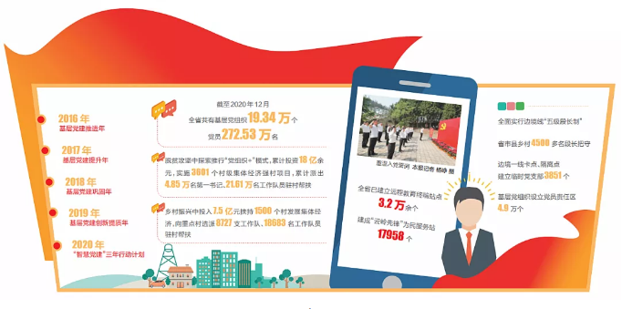 5年來,省委樹立大抓基層的鮮明導(dǎo)向,堅(jiān)持以習(xí)近平新時代中國特色社會主義思想為指導(dǎo),全面貫徹落實(shí)新時代黨的建設(shè)總要求和新時代黨的組織路線,按照“統(tǒng)籌謀劃、分類實(shí)施、無的要有、有的要強(qiáng)、強(qiáng)的要優(yōu)”的總體思路,持續(xù)推進(jìn)基層黨建“推進(jìn)年”、“提升年”、“鞏固年”、“創(chuàng)新提質(zhì)年”,實(shí)施“智慧黨建”三年行動計劃,推動全面從嚴(yán)治黨向基層延伸、向縱深發(fā)展,不斷夯實(shí)黨在邊疆執(zhí)政的組織基礎(chǔ)。