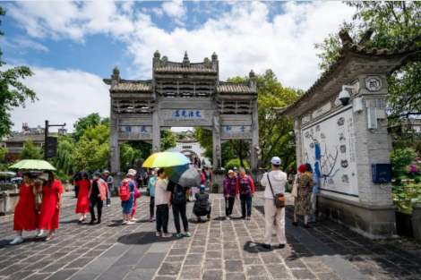 游客在騰沖市和順古鎮(zhèn)內(nèi)參觀游覽。