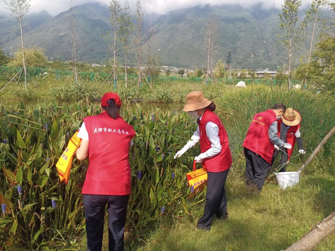 活動以“同心圓”城市基層黨建聯(lián)盟洱海保護為主要內(nèi)容,在洱海生態(tài)廊道開展清理福壽螺和文明勸導活動。