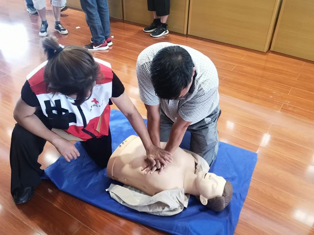 培訓(xùn)現(xiàn)場,老師演示了如何在搶救的黃金時(shí)間給生命垂危的人做心肺復(fù)蘇、解除氣道異物阻塞的急救方法,并對人體不同部位止血包扎的正確處理方法進(jìn)行了示范操作、情景互動(dòng)和不規(guī)范動(dòng)作糾正。通過現(xiàn)場互動(dòng)演示,讓大家更直觀地學(xué)習(xí)到了規(guī)范的急救流程和正確的處置方法。