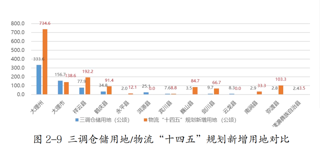 洱源縣現(xiàn)有倉儲用地376.2畝,云龍縣現(xiàn)有倉儲用地124.2畝,十四五期間洱源縣、云龍縣均不會新增倉儲用地。
