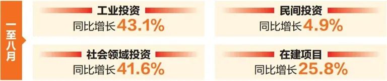 大抓項目投資,力促新項目落地開工,不斷擴大有效投資。截至8月末,全省在建項目同比增長25.8%。其中,計劃總投資10億元以上項目(不含房地產開發(fā))同比增長13.9%;1億至10億元項目(不含房地產開發(fā))同比增長19.8%。