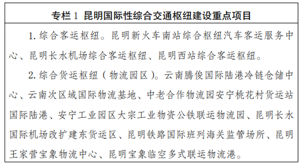 重點(diǎn)建設(shè)昆明國(guó)際性綜合交通樞紐