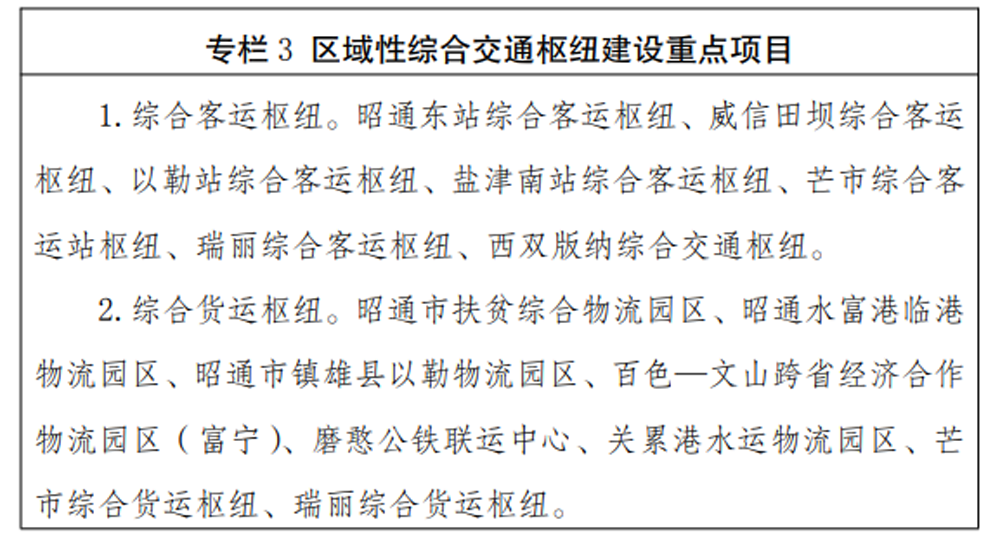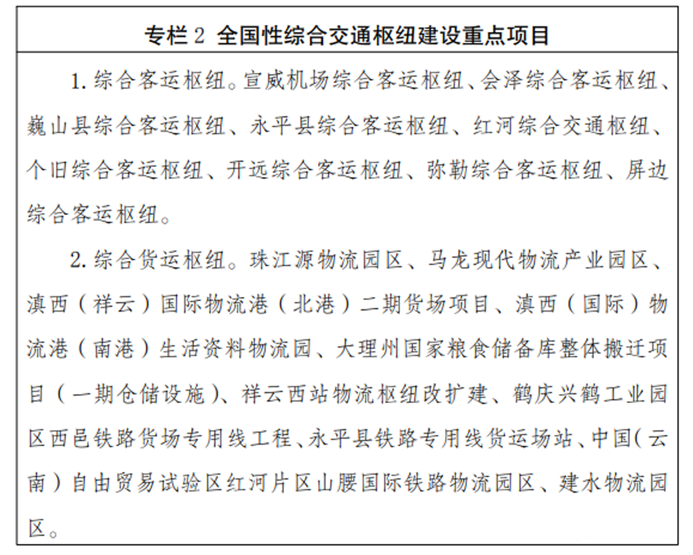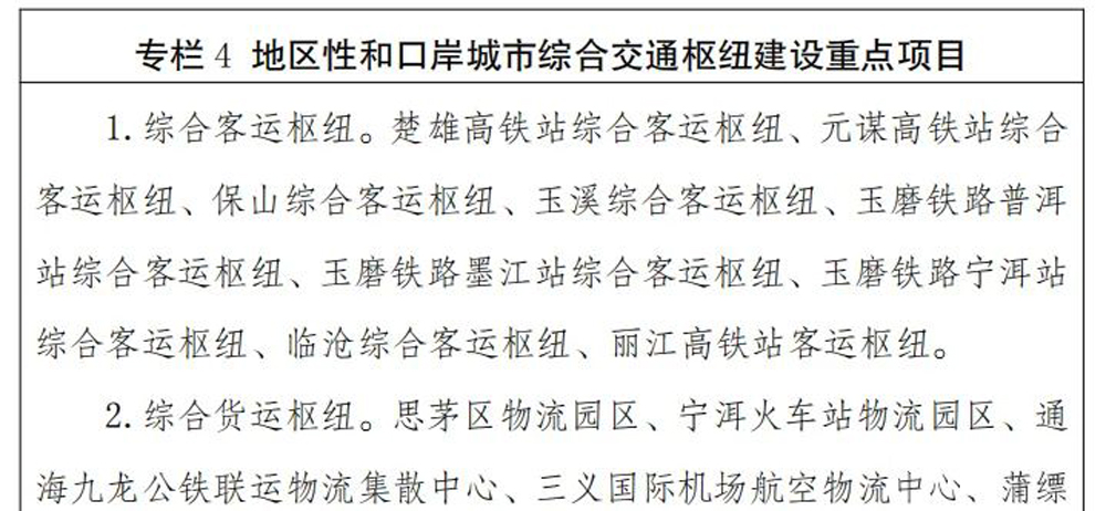 昆明長(zhǎng)水綜合交通樞紐、宣威機(jī)場(chǎng)綜合客運(yùn)樞紐、芒市綜合客運(yùn)站樞紐等項(xiàng)目正在加快前期工作。