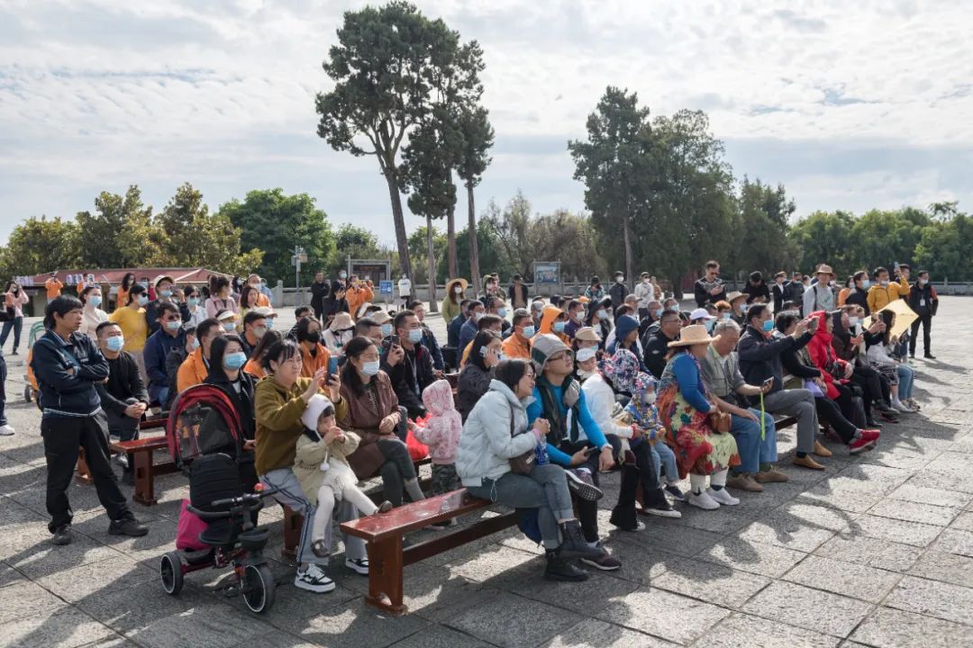 精彩不斷的演出吸引住了前來(lái)景區(qū)游覽的客人駐足觀(guān)看,連景區(qū)附近的各民族老百姓都聞聲而來(lái),歡歡喜喜看演出,熱烈的掌聲和喝彩聲此起彼伏。