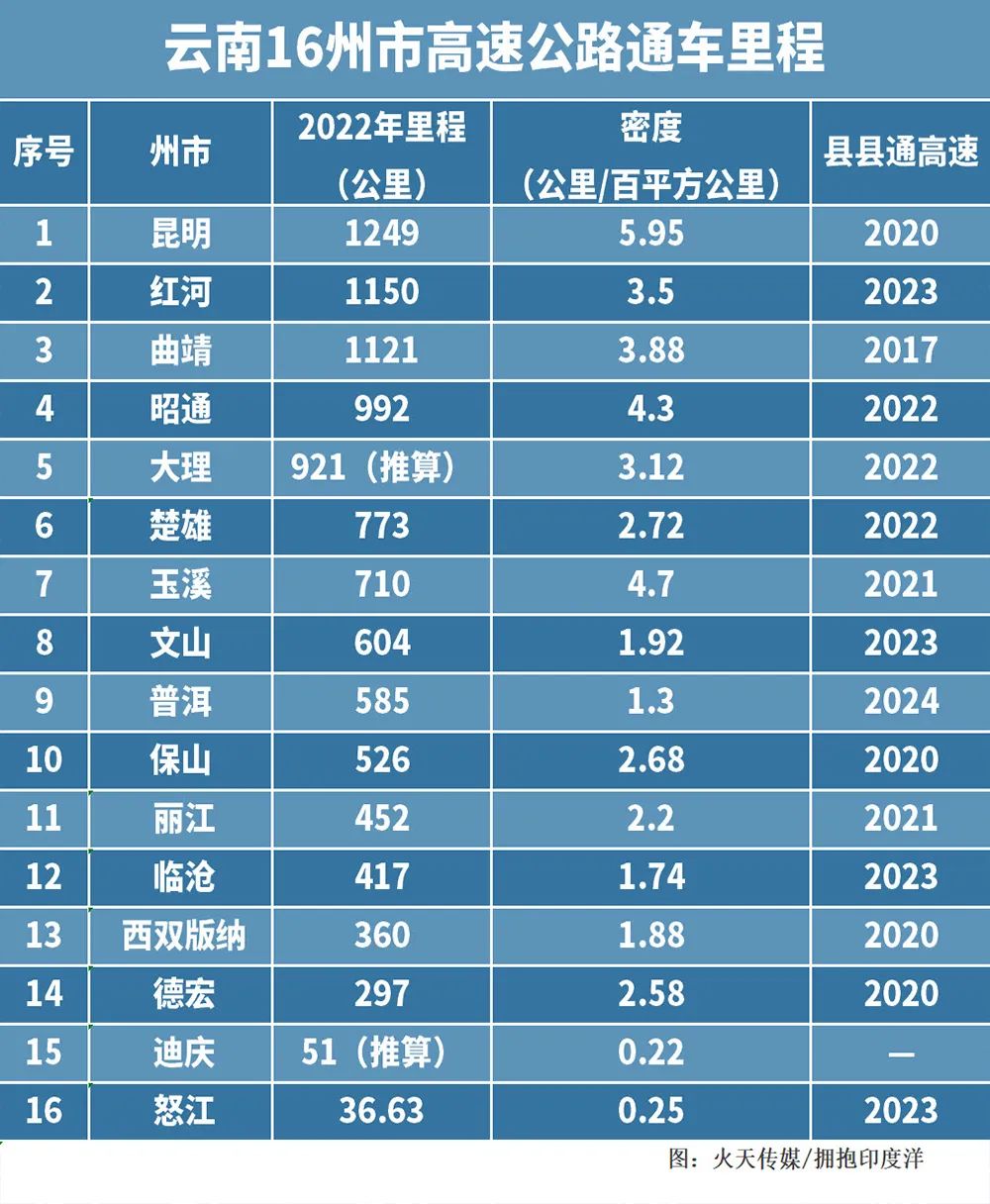 云南16州市高速公路里程:三州市比肩北上廣,紅河曲靖爭(zhēng)第二,大理昭通進(jìn)步快