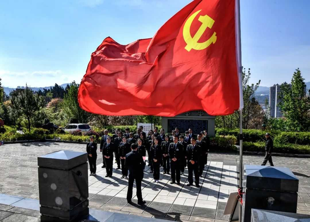 參加活動的黨員、團員和職工代表在洱海公園大理人民英雄紀念廣場為革命先烈們默哀和敬獻鮮花,深刻悼念為了民族的解放事業(yè)和國家的和平統(tǒng)一而犧牲的人民英雄,緬懷他們的豐功偉績。洱海游船分公司黨支部書記楊志勇帶領全體黨員重溫了入黨誓詞,面對鮮紅的黨旗,黨員們鏗鏘有力的聲音響徹在人民英雄紀念廣場上空,錚錚誓詞,是對自己初心使命的檢驗,更是對人民英雄們的承諾。